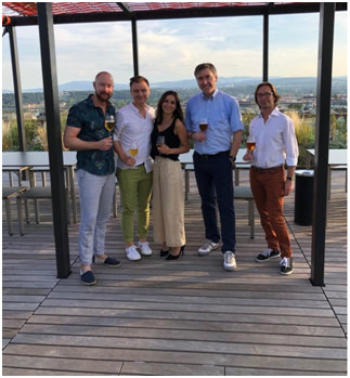 Auf persönliche Einladung von Sören, durften einige Mitglieder der Goldenen Schlüssel Wien am 17. Juli sich selbst ein Bild vom Neuzugang machen. Neben dem Restaurant im Erdgeschoss, verfügt die Immobilie auch über eine atemberaubende Dachterrasse. Bei traumhaftem Wetter durften wir den Aperitif mit einem 360 Grad Rundblick genießen. Nach dem einem oder anderen Gespräch unter Kollegen beziehungsweise auch mit dem jungen, fachkundigen Sommelier und den motivierten Service-Mitarbeitern, starteten wir in einen spannenden-kulinarischen Abend.