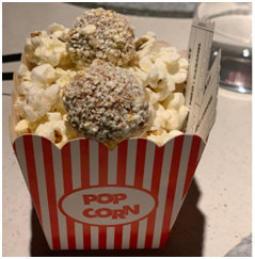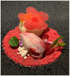 Eine ausgefallene Idee hatte Sören und sein Team auch bei Wahl der Nachspeise. Inspiration hierbei war der Duft eines Parfums seiner Verlobten Saskia, welche er mit Himbeeren, Veilchen und Jasmin Reis interpretierte. Selbstgefertigte Pralinen auf Pop-Corn sowie eine bunte Variation an intensiven Geschmacksrichtungen rundeten diesen kulinarischen Abend stimmungsvoll ab.