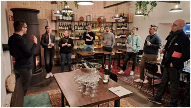 Im gemütlichen Gewölbe hieß uns Aaron Priewasser willkommen und erzählte uns von der Grundidee des Betriebs.